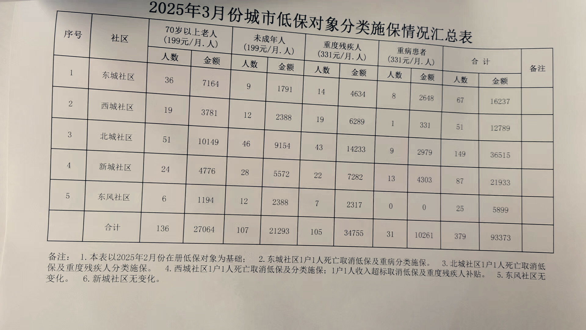 陇县2025年3月城市低保对象分类施保汇总表