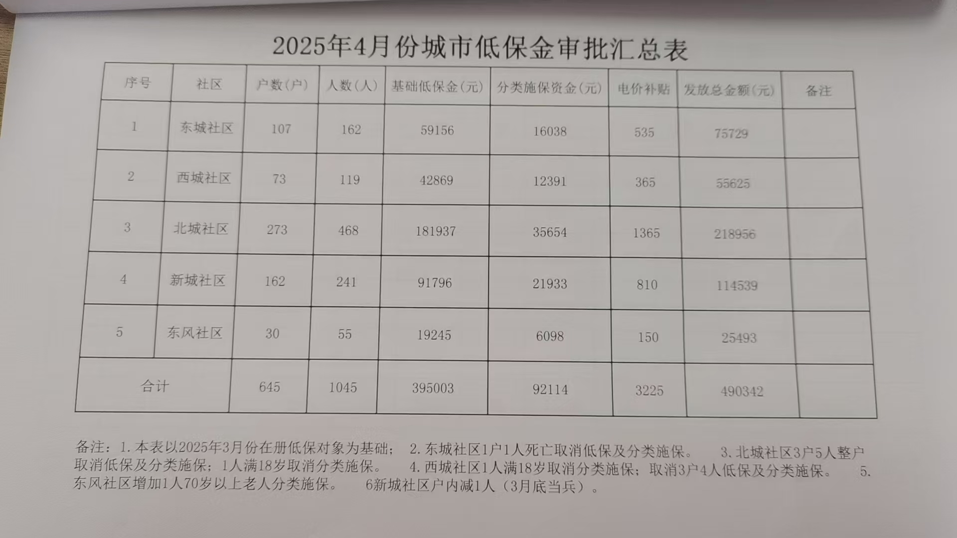 2025年4月份城市低保审批汇总表