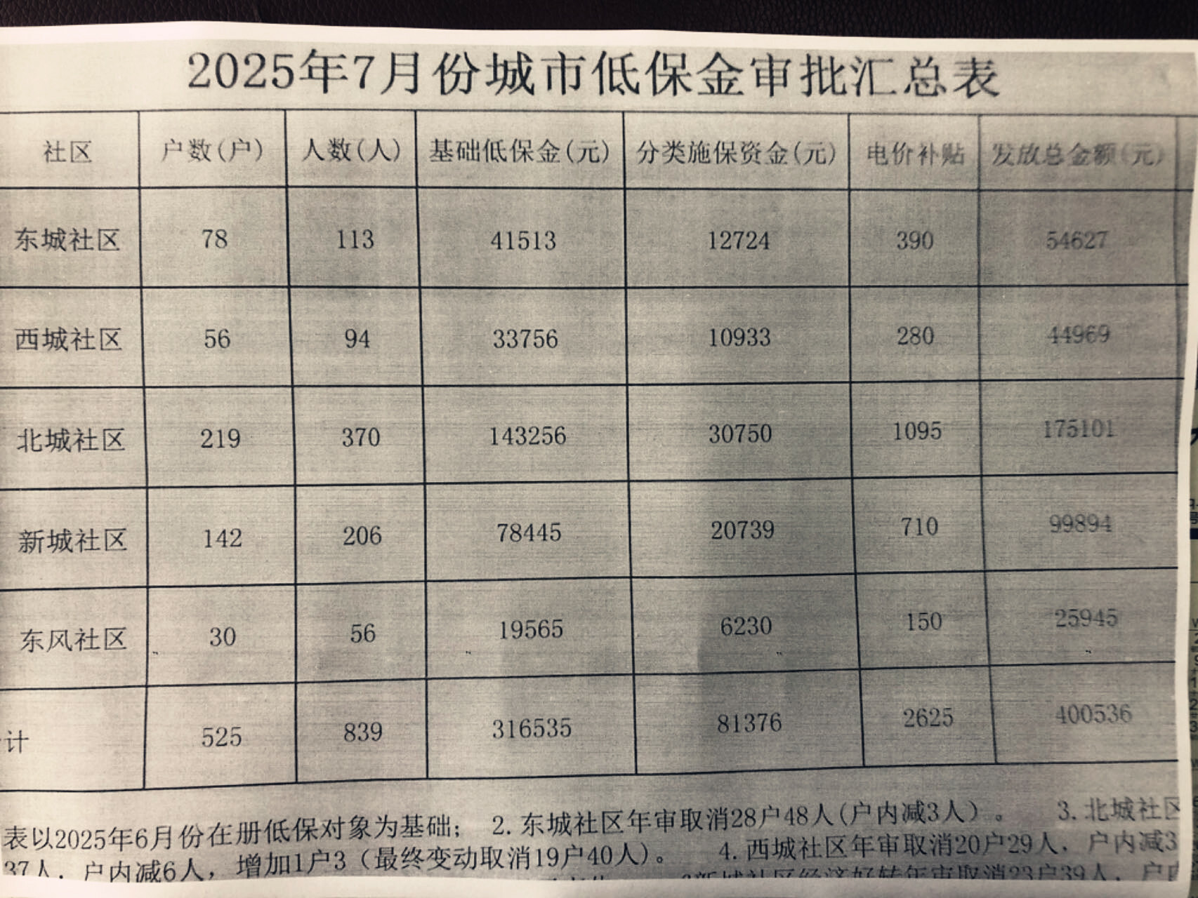2025年7月份城市低保金审批汇总表