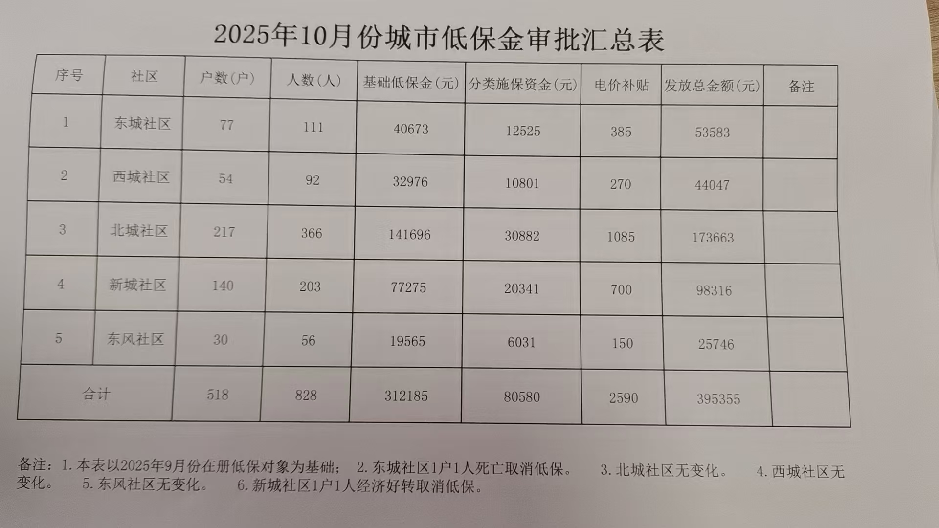 陇县2025年10月份城市低保金审批汇总表
