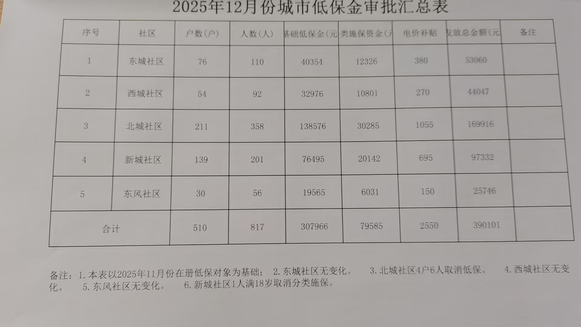 陇县2025年12月份城市低保金审批汇总表