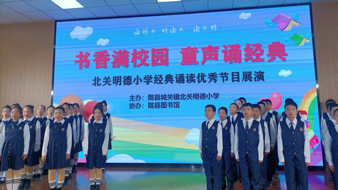 华夏源远流长的经典诗文,是文化艺苑中经久不衰的瑰宝。犹如夏日的繁星,闪烁着夺目的光彩;又如春日的百花,散发着馥郁的芳香。近日,在北关明德小学阶梯教室正在进行一场“书香满校园,童声诵经典”优秀节目展演活动。