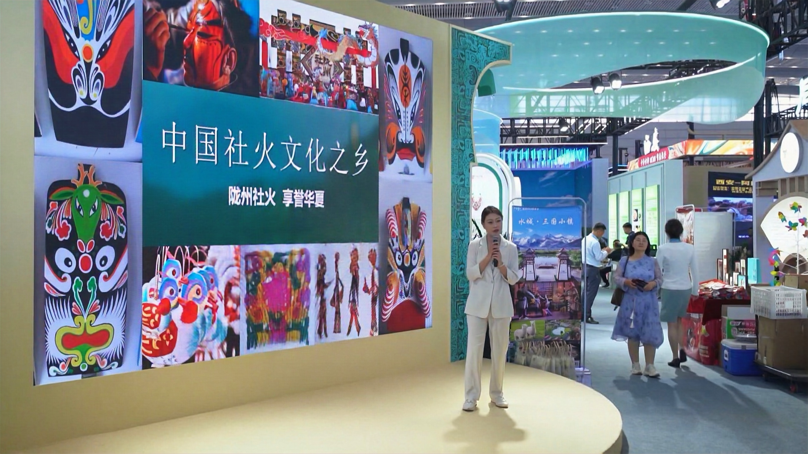 宣传推介中,我县聚焦文旅核心资源,重点推介了关山草原、龙门洞等标志性景区,并详细解读了精品旅游线路、旅游优惠政策和“引客入陇”福利举措。文艺展演环节,我县歌手刘博平现场演唱原创歌曲《中国社火》,展现了陇县作为“中国社火文化之乡”的独特魅力。活动现场还设置了互动问答环节,以沉浸式互动,让更多人记住陇县、向往陇县。此外,展区内的文创产品同样亮点纷呈,陇州非遗社火脸谱、刺绣、剪纸、皮影、关山草原冰箱贴等根植于陇县本土文化的文创产品也集中亮相,吸引了大量游客驻足观赏咨询,成为彰显陇县文旅魅力的亮眼窗口。