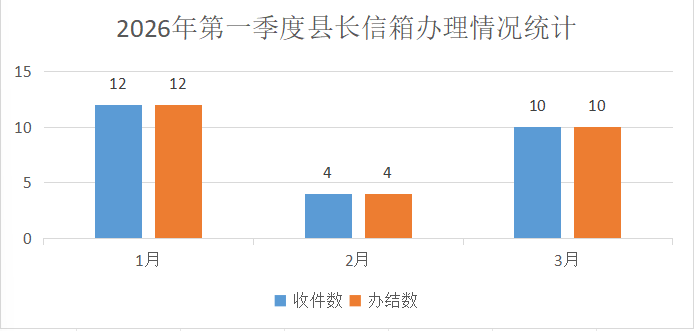 2026年第一季度,陇县县长信箱共收到信件26件,办结26件,详细统计如下: