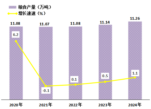 全年粮食作物播种面积49.85万亩,较上年增长0.2%;粮食总产量11.14万吨,较上年增长0.5%。其中小麦播种面积26.41万亩、较上年增长0.3%,总产量4.52万吨、较上年下降0.2%;玉米播种面积17.05万亩、总产量5.76万吨,分别较上年增长0.7%和0.7%。